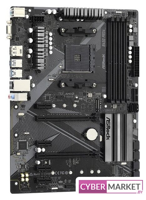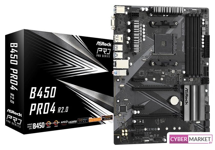 mATX, сокет AMD AM4, чипсет AMD B450, память 2xDDR4 до 3200 МГц, слоты: 1xPCIe x16 3.0 и 2.0, 1xPCIe x1, 1xM.2
