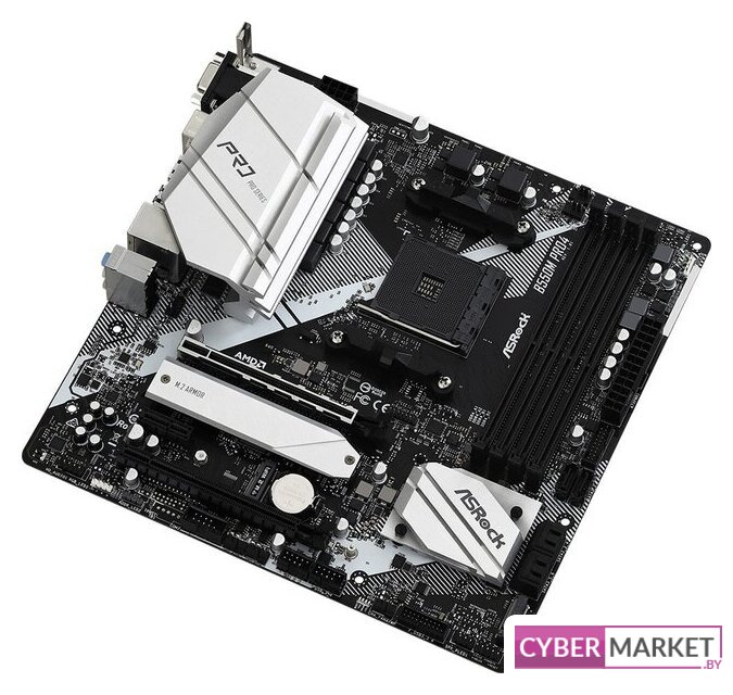 mATX, сокет AMD AM4, чипсет AMD B550, память 2xDDR4 до 4600 МГц, слоты: 1xPCIe x16 4.0 и 3.0, 1xPCIe x1, 1xM.2