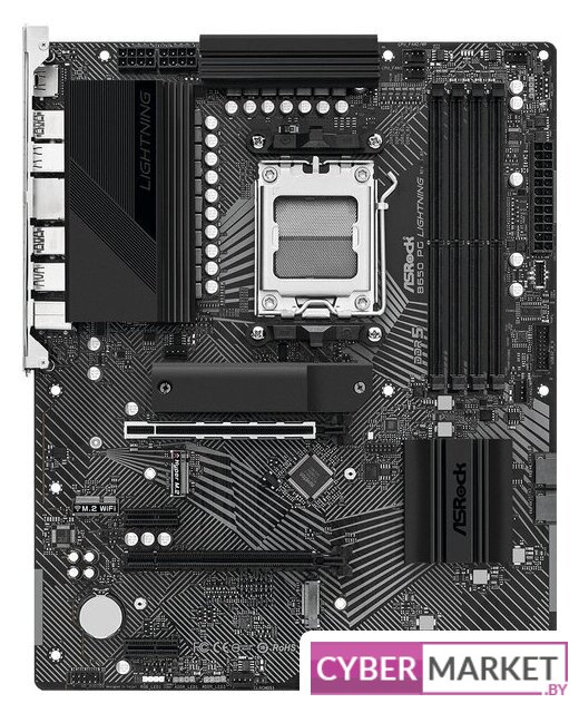 mATX, сокет AMD AM5, чипсет AMD B650, память 4xDDR5 до 7600 МГц, слоты: 1xPCIe x16, 2xPCIe x1, 2xM.2, 802.11ax (Wi-Fi 6)+Bluetooth 5.2