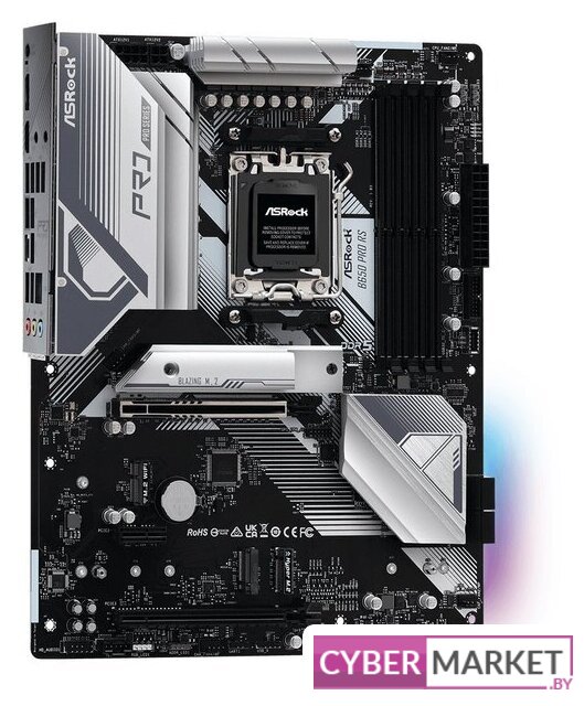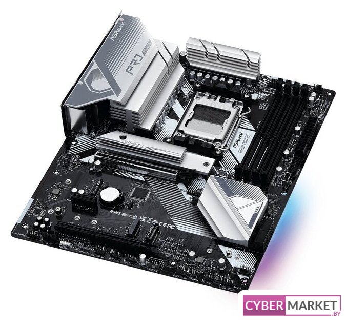 mATX, сокет AMD AM5, чипсет AMD B650, память 4xDDR5 до 6400 МГц, слоты: 2xPCIe x16 4.0, 1xPCIe x1, 2xM.2, 802.11ax (Wi-Fi 6E)+Bluetooth 5.2