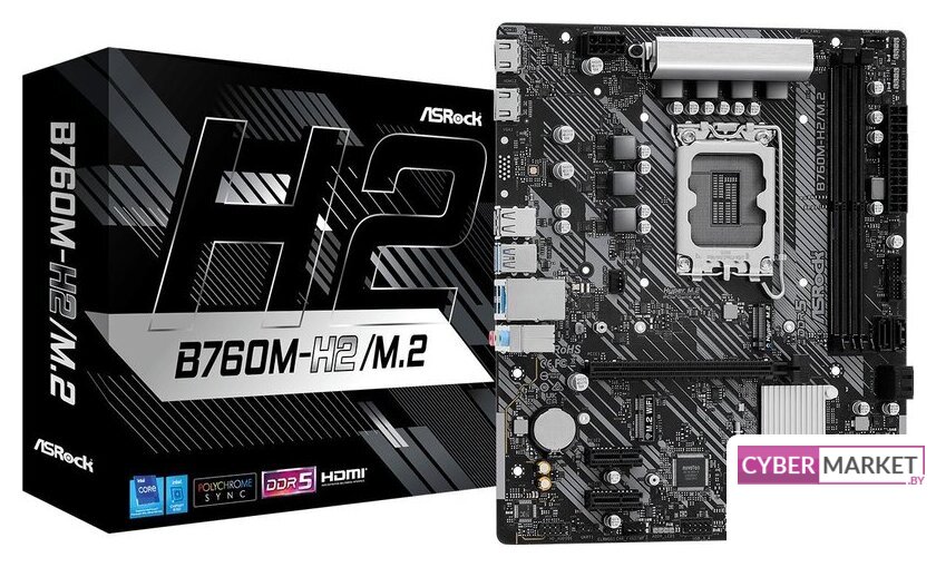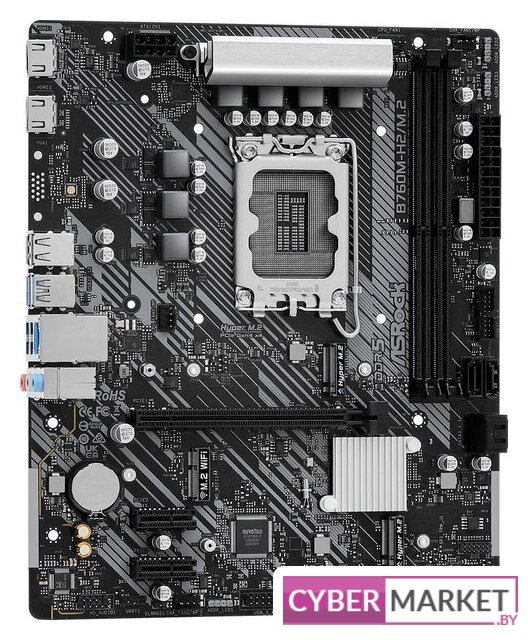 mATX, сокет Intel LGA1700, чипсет Intel B760, память 4xDDR4 до 4800 МГц, слоты: 1xPCIe x16 4.0, 2xPCIe x1, 2xM.2