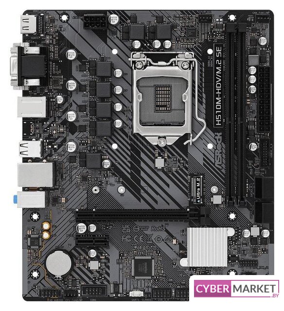 mATX, сокет Intel LGA1200, чипсет Intel H510, память 2xDDR4, слоты: 1xPCIe x16, 1xPCIe x1