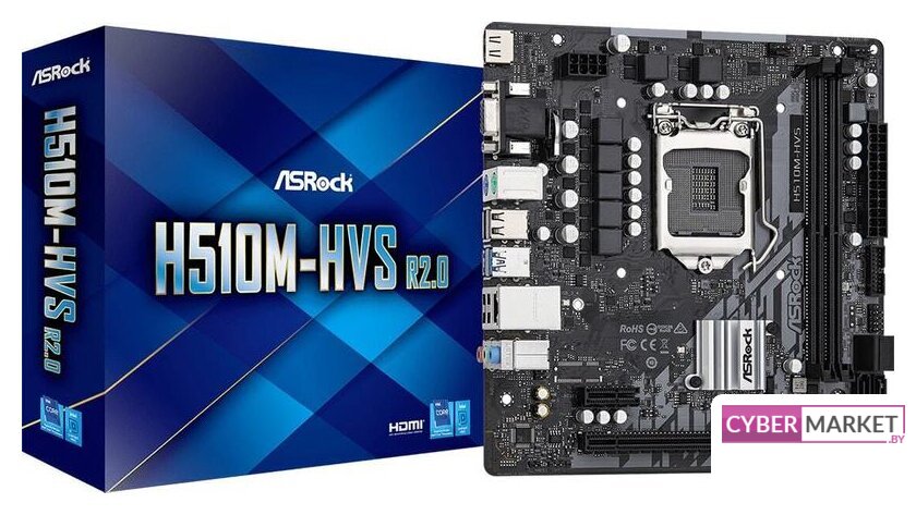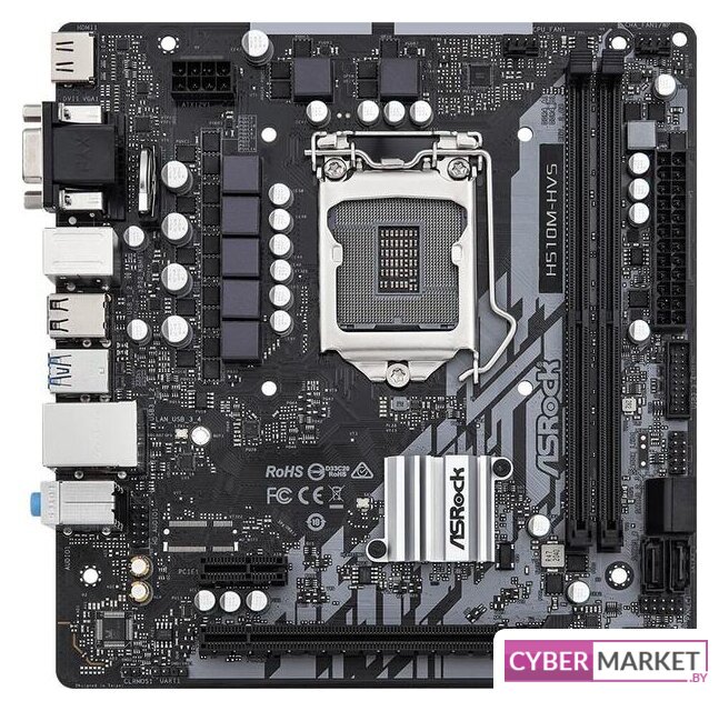 mATX, сокет Intel LGA1200, чипсет Intel H510, память 2xDDR4, слоты: 1xPCIe x16, 1xPCIe x1