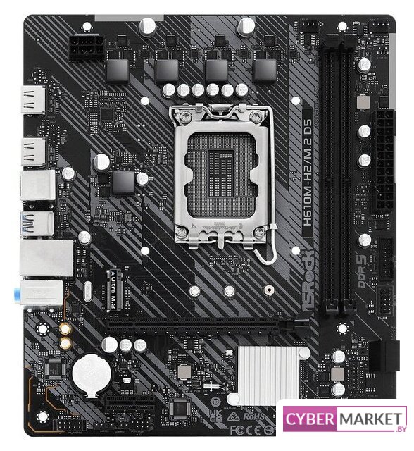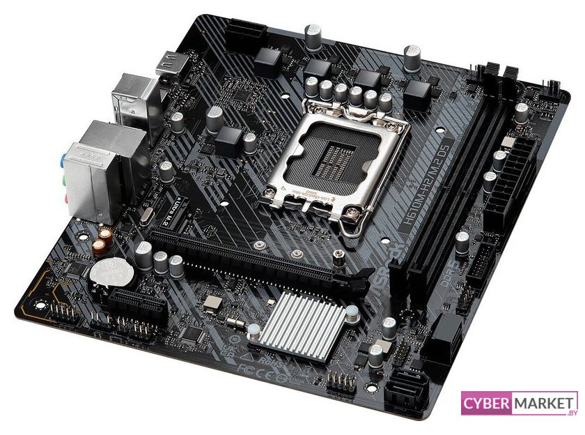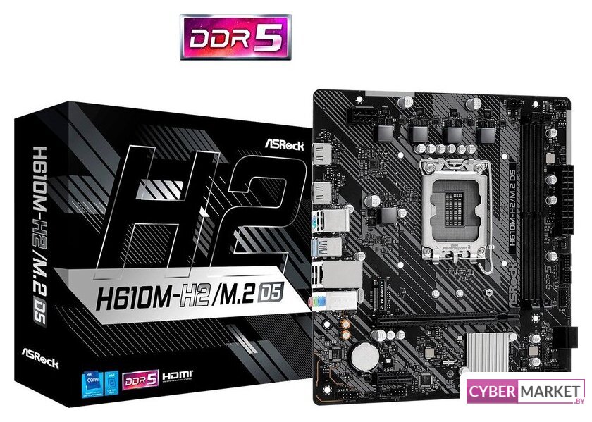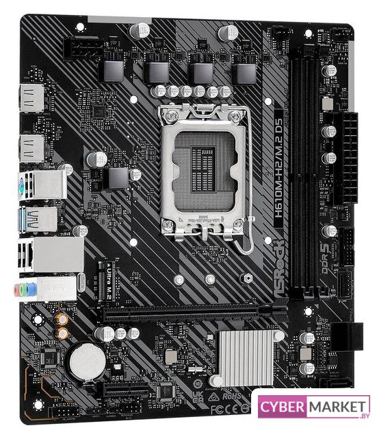 mATX, сокет Intel LGA1700, чипсет Intel H610, память 2xDDR5 до 5600 МГц, слоты: 1xPCIe x16, 1xPCIe x1, 1xM.2