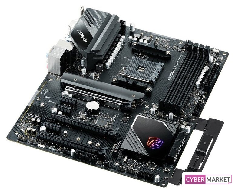 ATX, сокет AMD AM4, чипсет AMD B550, память 4xDDR4 до 4400 МГц, слоты: 2xPCIe x16 4.0, 2xPCIe x1, 2xM.2, 10+2+1 фаз питания