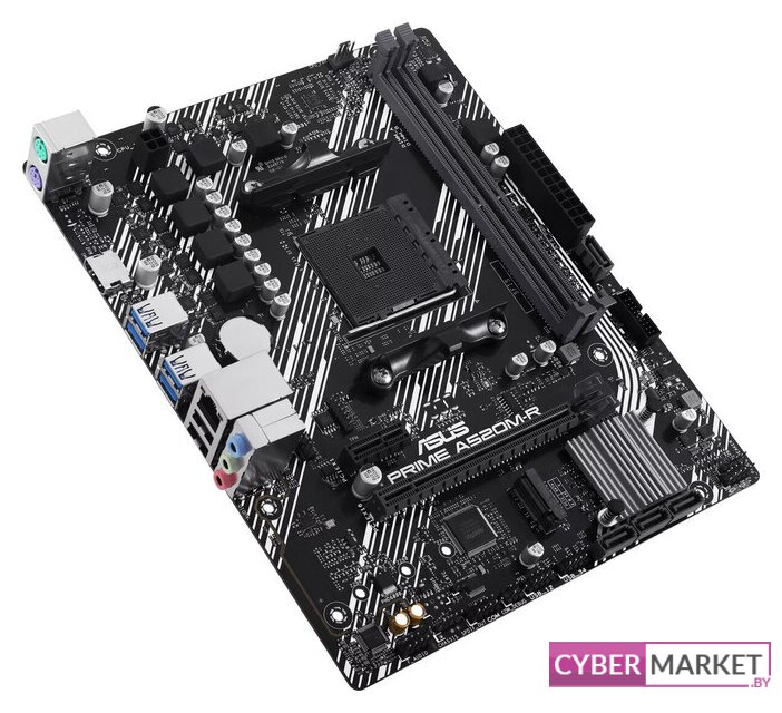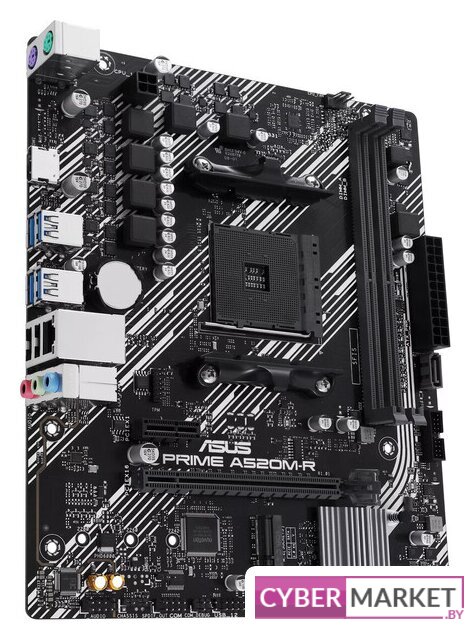 mATX, сокет AMD AM4, чипсет AMD A520, память 2xDDR4, слоты: 1xPCIe x16, 2xPCIe x1, 1xM.2