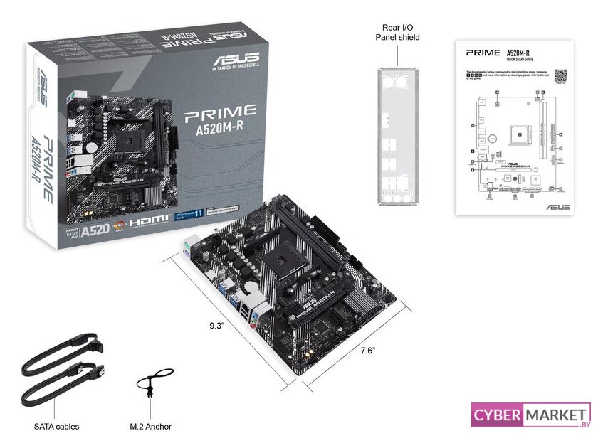 mATX, сокет AMD AM4, чипсет AMD A520, память 2xDDR4 до 4600 МГц, слоты: 1xPCIe x16 3.0, 1xPCIe x1, 1xM.2