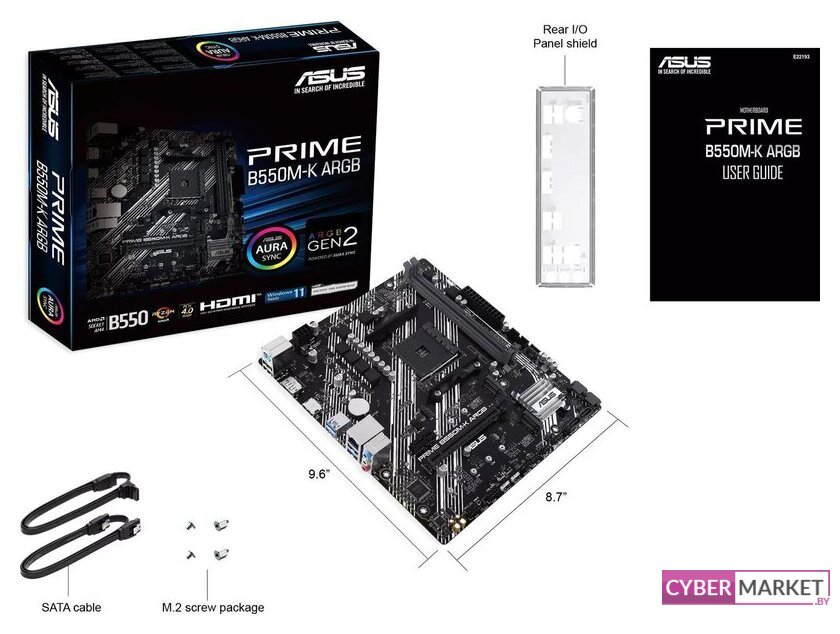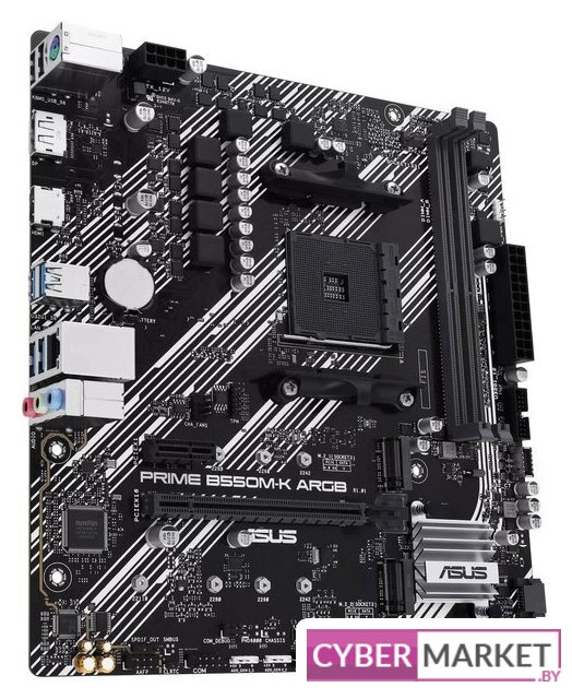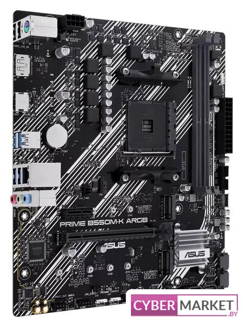 mATX, сокет AMD AM4, чипсет AMD B550, память 4xDDR4 до 4733 МГц, слоты: 2xPCIe x16 4.0, 1xPCIe x1, 2xM.2, 8 фаз питания