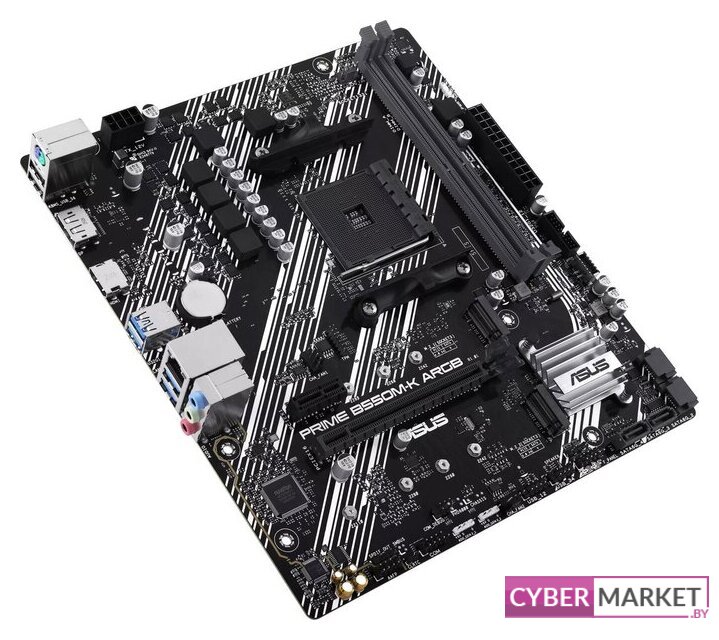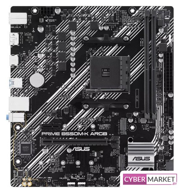 mATX, сокет AMD AM4, чипсет AMD B550, память 2xDDR4 до 4600 МГц, слоты: 1xPCIe x16 4.0 и 3.0, 1xPCIe x1, 1xM.2