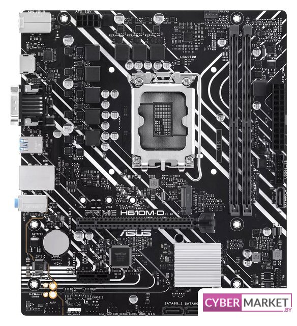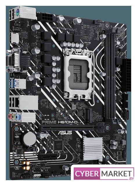 mATX, сокет Intel LGA1700, чипсет Intel H610, память 2xDDR4 до 3200 МГц, слоты: 1xPCIe x16 4.0, 1xPCIe x1, 1xM.2