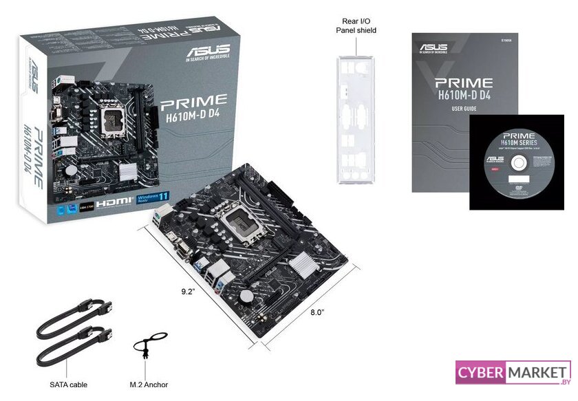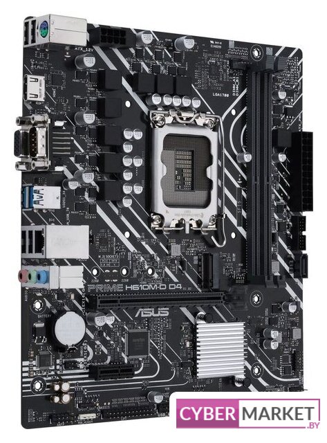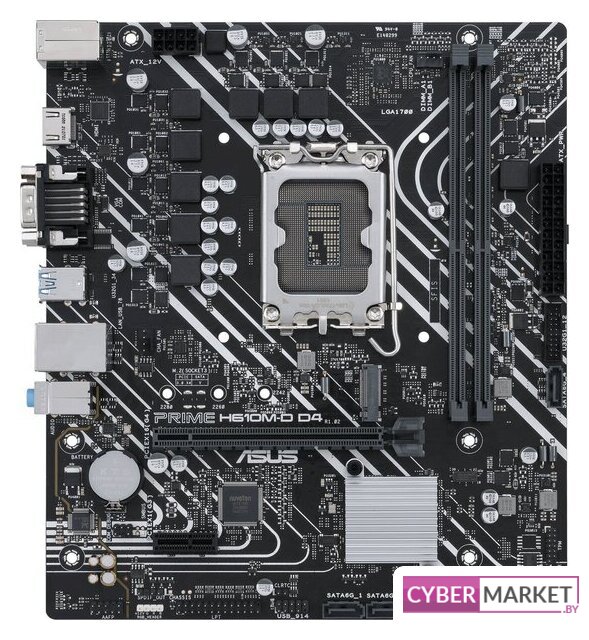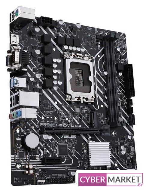 mATX, сокет Intel LGA1700, чипсет Intel H610, память 2xDDR5 до 5600 МГц, слоты: 1xPCIe x16, 1xPCIe x1, 1xM.2