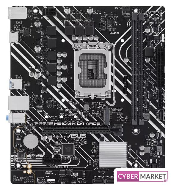 mATX, сокет Intel LGA1700, чипсет Intel H610, память 2xDDR5 до 5600 МГц, слоты: 1xPCIe x16 4.0, 1xPCIe x1, 1xM.2, 3+1+1 фаз питания