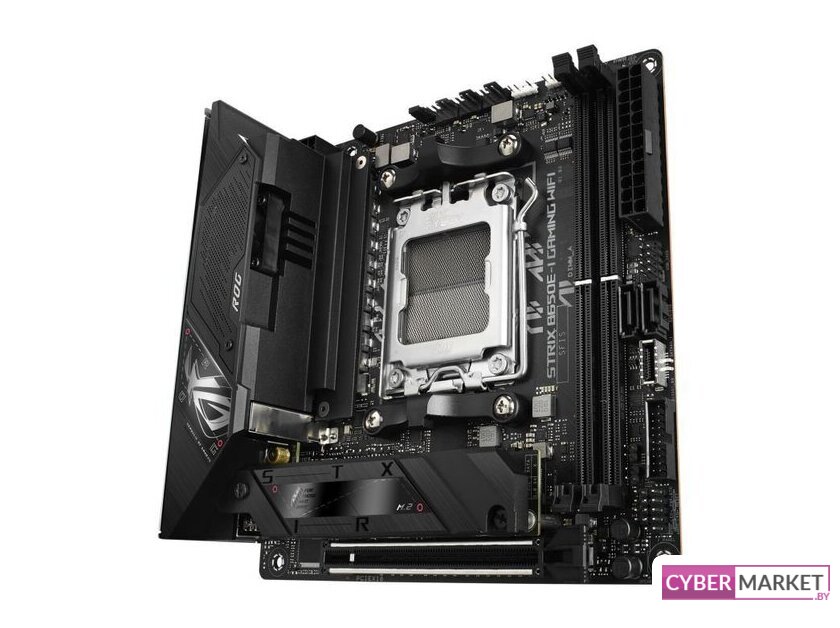 Mini-ITX, сокет AMD AM5, чипсет AMD B650, память 2xDDR5 до 7200 МГц, слоты: 1xPCIe x16 4.0, 2xM.2, 802.11ax (Wi-Fi 6E)+Bluetooth 5.2, 8+2+1 фаз питания