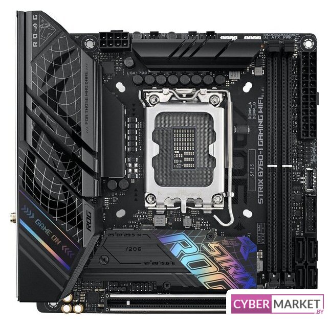 mATX, сокет Intel LGA1700, чипсет Intel B760, память 4xDDR4 до 5333 МГц, слоты: 2xPCIe x16 4.0, 1xPCIe x1, 2xM.2, 802.11ax (Wi-Fi 6E)+Bluetooth 5.3, 12+1 фаз питания