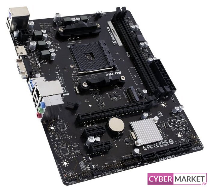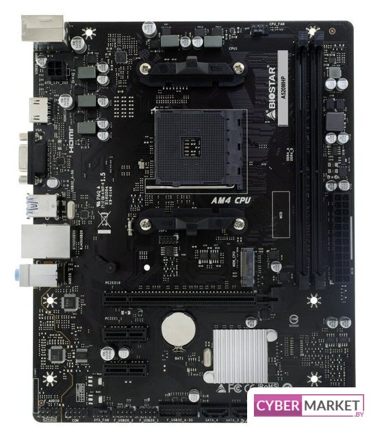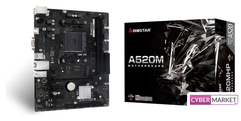 mATX, сокет AMD AM4, чипсет AMD A520, память 2xDDR4 до 4600 МГц, слоты: 1xPCIe x16 3.0, 1xPCIe x1, 1xM.2
