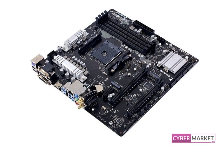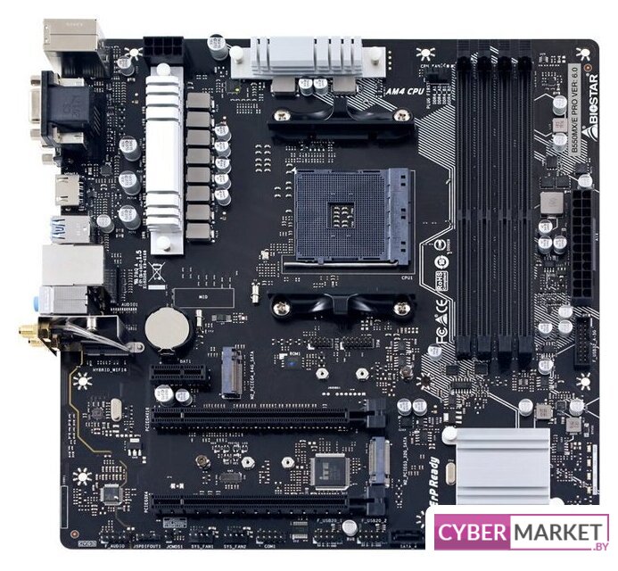 mATX, сокет AMD AM4, чипсет AMD B450, память 2xDDR4 до 3200 МГц, слоты: 1xPCIe x16 3.0 и 2.0, 1xPCIe x1, 1xM.2