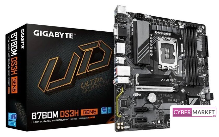 mATX, сокет Intel LGA1700, чипсет Intel B760, память 4xDDR5 до 7200 МГц, слоты: 2xPCIe x16 5.0, 3xM.2, 7+1+1 фаз питания