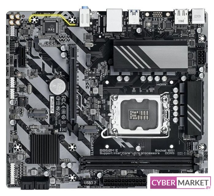 mATX, сокет Intel LGA1851, чипсет Intel B860, память 4xDDR5 до 9066 МГц, слоты: 1xPCIe x16 5.0, 2xPCIe x1, 2xM.2, 4+1+2 фаз питания