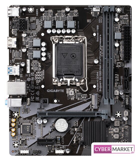 mATX, сокет Intel LGA1700, чипсет Intel H610, память 2xDDR4 до 3200 МГц, слоты: 1xPCIe x16 4.0, 1xPCIe x1, 1xM.2