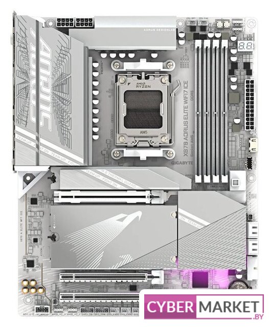 ATX, чипсет AMD X870E, память 4xDDR5 до 8200 МГц, слоты: 3xPCIe x16 5.0, 4xM.2, 802.11be (Wi-Fi 7)+Bluetooth 5.4, 16+2+2 фаз питания