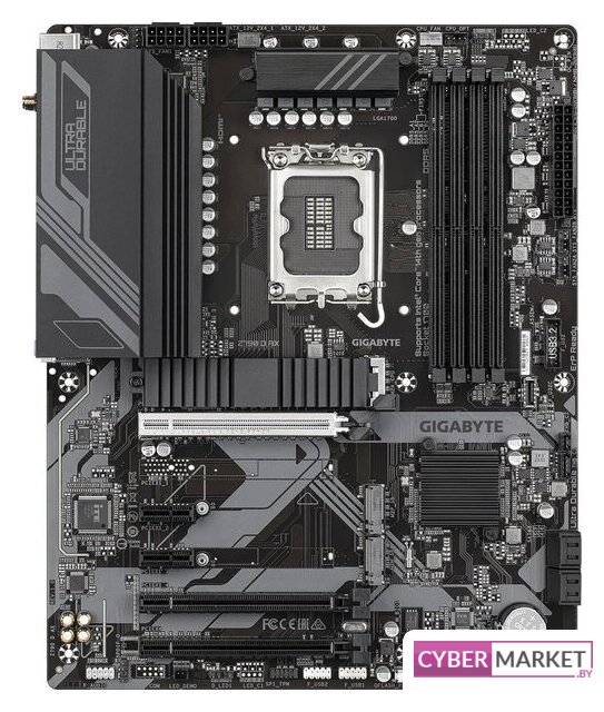 ATX, чипсет Intel B760, память 4xDDR5 до 7600 МГц, слоты: 3xPCIe x16 5.0, 3xM.2, 802.11ax (Wi-Fi 6E)+Bluetooth 5.3, 8+1+1 фаз питания