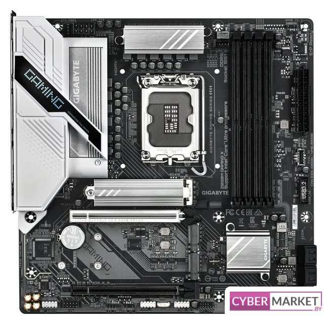 mATX, сокет Intel LGA1851, чипсет Intel B860, память 4xDDR5 до 9200 МГц, слоты: 2xPCIe x16 5.0, 2xM.2, 802.11ax (Wi-Fi 6E)+Bluetooth 5.3, 8+1+2 фаз питания