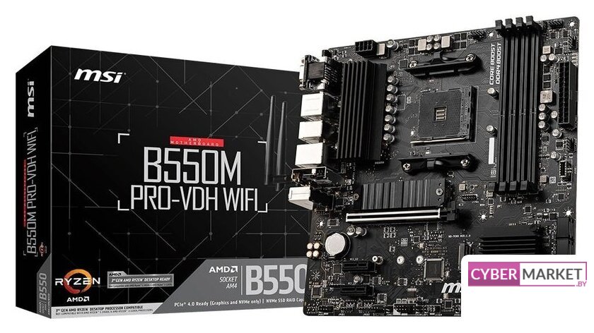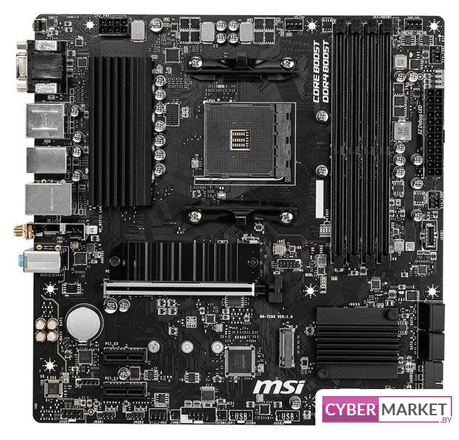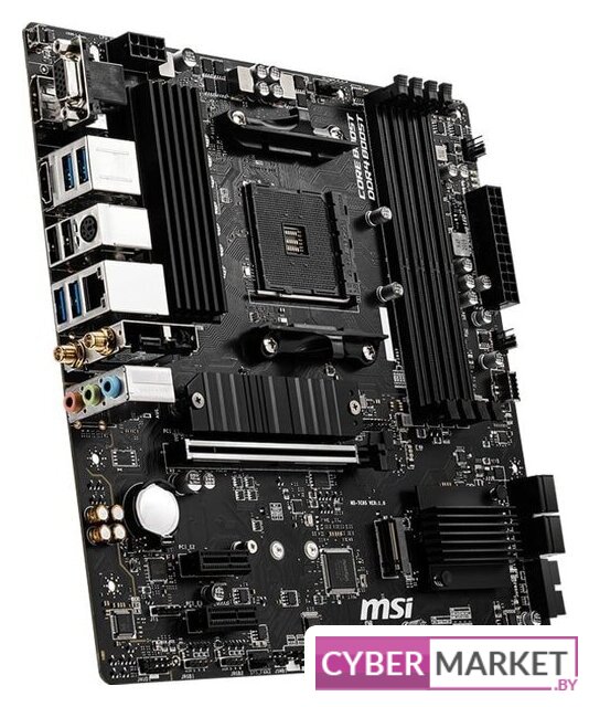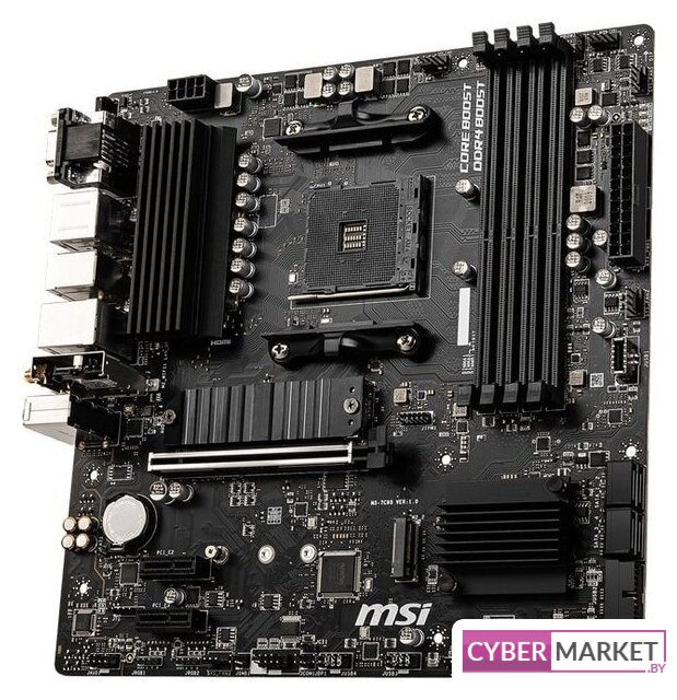 mATX, сокет AMD AM4, чипсет AMD B550, память 4xDDR4 до 4800 МГц, слоты: 2xPCIe x16 4.0, 1xPCIe x1, 2xM.2