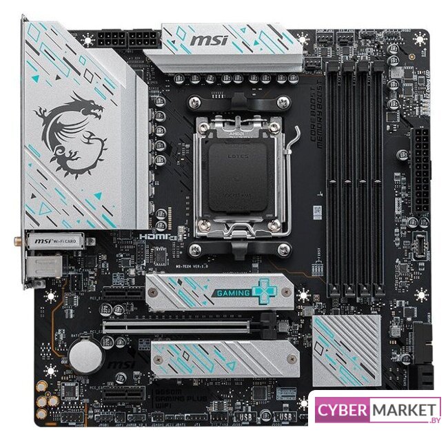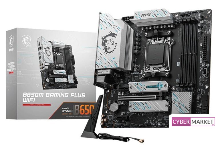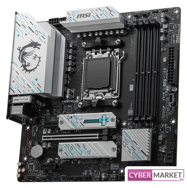 mATX, сокет AMD AM5, чипсет AMD B650, память 4xDDR5 до 7600 МГц, слоты: 2xPCIe x16 4.0, 1xPCIe x1, 2xM.2, 802.11ax (Wi-Fi 6E)+Bluetooth 5.3, 12+2+1 фаз питания