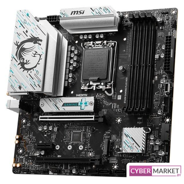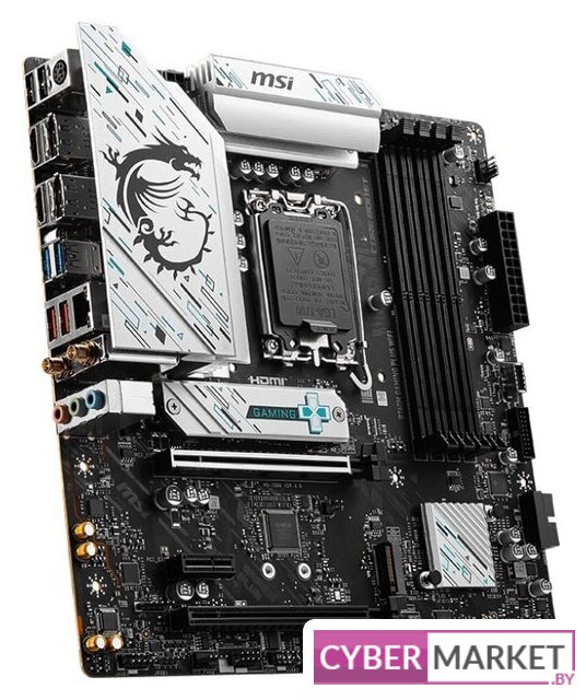 mATX, сокет Intel LGA1700, чипсет Intel B760, память 4xDDR5 до 7600 МГц, слоты: 2xPCIe x16 4.0, 2xM.2, 802.11ax (Wi-Fi 6E)+Bluetooth 5.3, 8+1+1 фаз питания