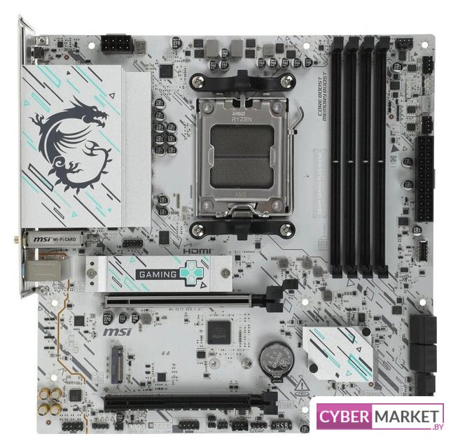 mATX, чипсет AMD B850, память 4xDDR5 до 8000 МГц, слоты: 4xPCIe x16 5.0, 3xM.2, 802.11ax (Wi-Fi 6)+Bluetooth 5.4, 8+2+1 фаз питания
