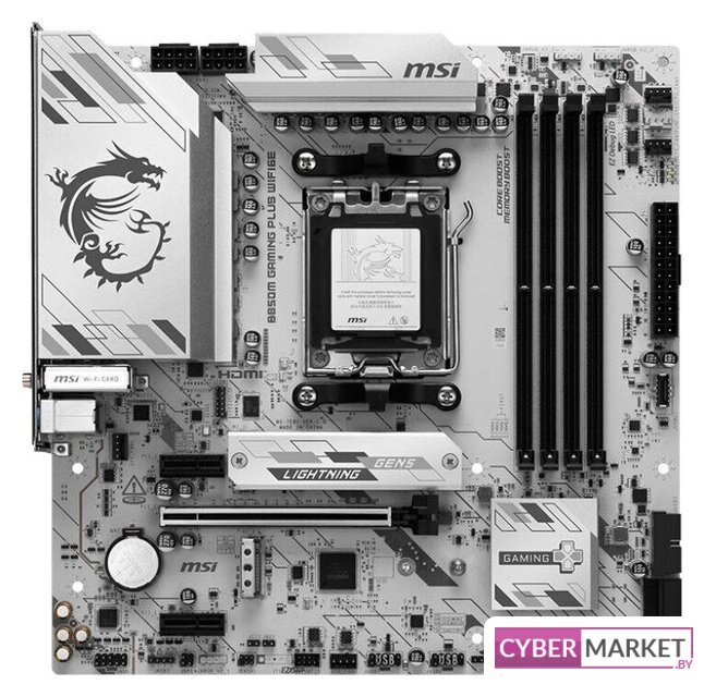 mATX, чипсет AMD B850, память 4xDDR5 до 8000 МГц, слоты: 4xPCIe x16 5.0, 3xM.2, 802.11ax (Wi-Fi 6)+Bluetooth 5.4, 8+2+1 фаз питания