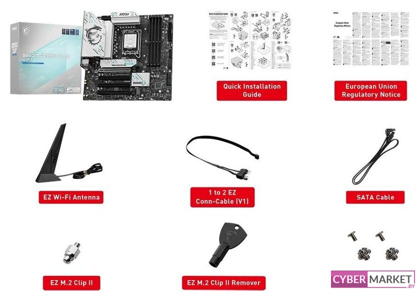 | Комплектация | - кабель SATA- Wi-Fi антенна - винты для M.2- 1-2 EZ кабель - винт EZ M.2 Clip II- EZ M.2 Clip II экстрактор- документация |