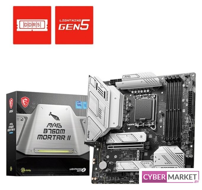 mATX, сокет Intel LGA1700, чипсет Intel B760, память 4xDDR5 до 7800 МГц, слоты: 2xPCIe x16 5.0, 1xPCIe x1, 3xM.2, 12+1+1 фаз питания