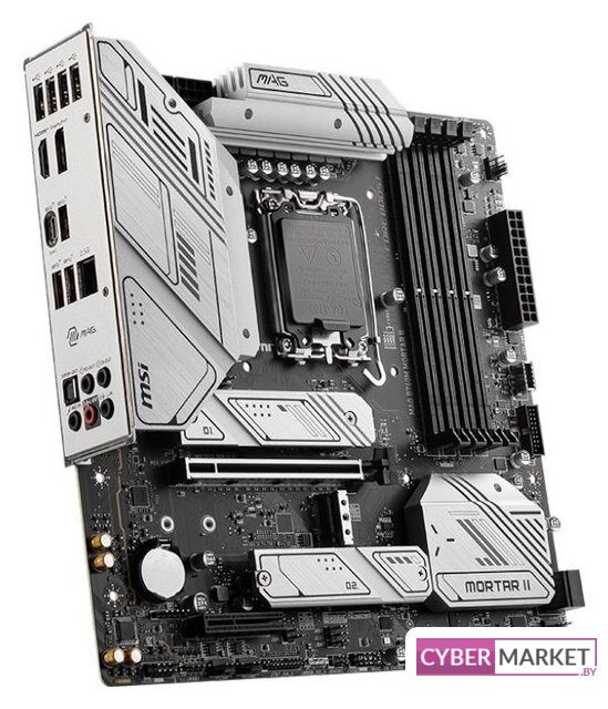 mATX, сокет Intel LGA1700, чипсет Intel B760, память 4xDDR5 до 7800 МГц, слоты: 1xPCIe x16 5.0, 1xPCIe x4, 3xM.2, 802.11ax (Wi-Fi 6E)+Bluetooth 5.3, 12+1+1 фаз питания
