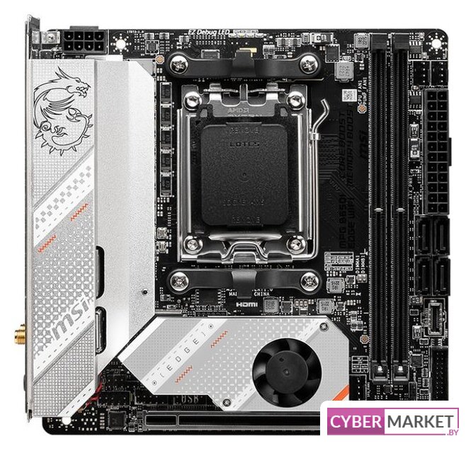 mATX, сокет AMD AM5, чипсет AMD B650, память 4xDDR5 до 7600 МГц, слоты: 2xPCIe x16 4.0, 1xPCIe x1, 2xM.2, 802.11ax (Wi-Fi 6E)+Bluetooth 5.3, 12+2+1 фаз питания