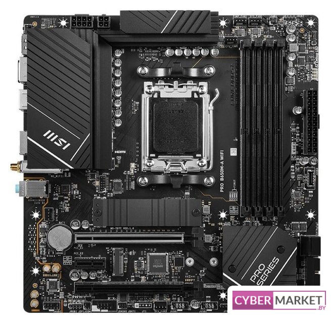 mATX, сокет AMD AM5, чипсет AMD B650, память 4xDDR5 до 7600 МГц, слоты: 3xPCIe x16 4.0, 2xM.2