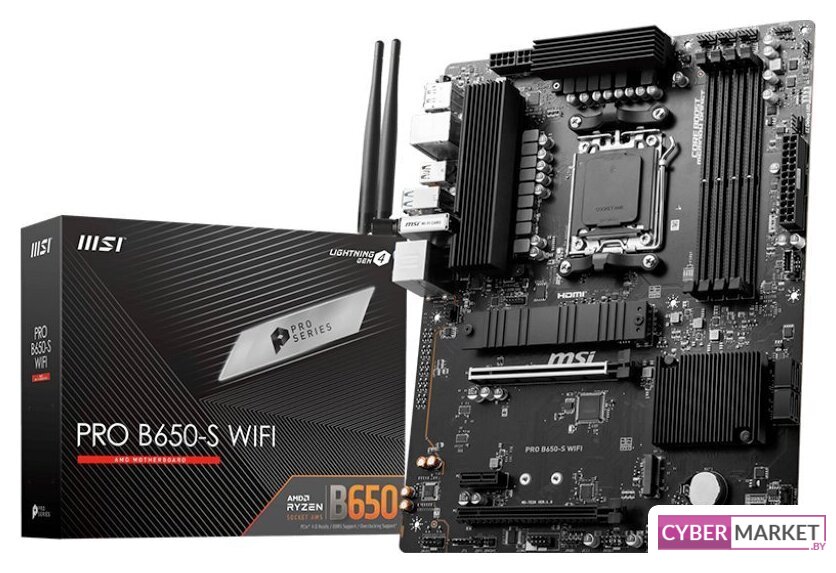 ATX, сокет AMD AM5, чипсет AMD B650, память 4xDDR5 до 7600 МГц, слоты: 2xPCIe x16 4.0, 2xPCIe x1, 2xM.2
