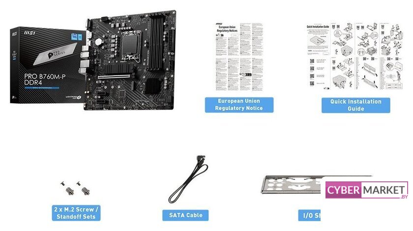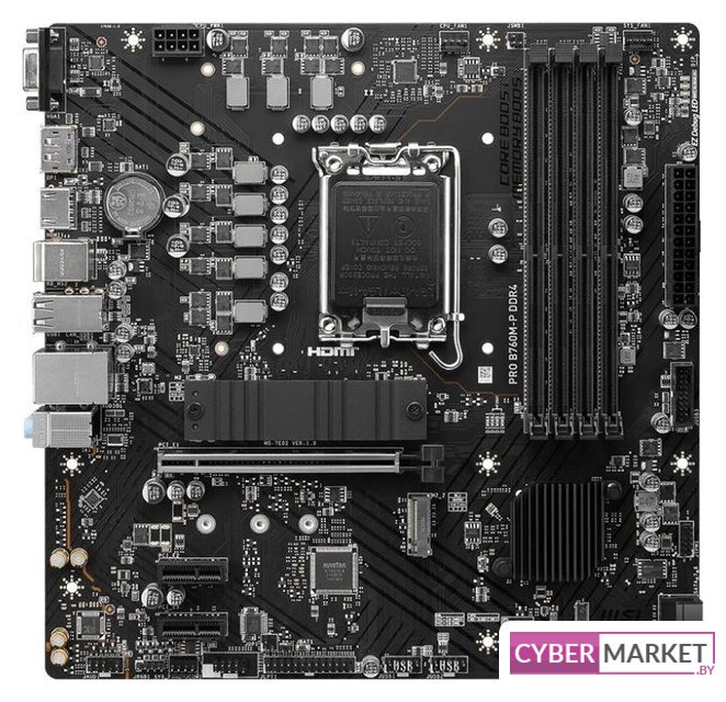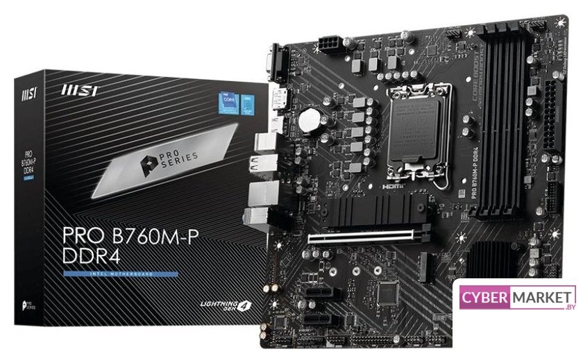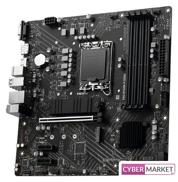 mATX, сокет Intel LGA1700, чипсет Intel B760, память 2xDDR4 до 5333 МГц, слоты: 1xPCIe x16 4.0, 2xPCIe x1, 2xM.2