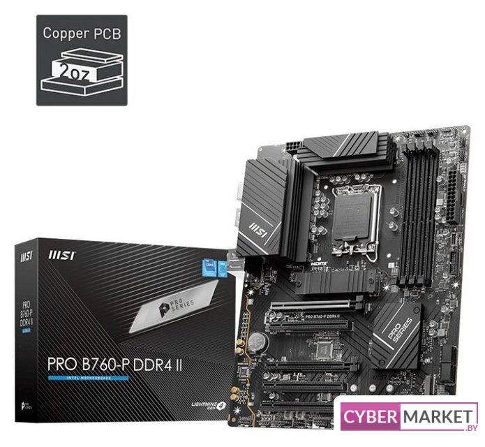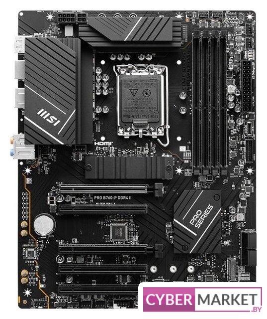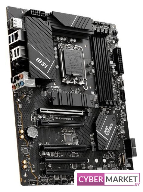 mATX, сокет Intel LGA1700, чипсет Intel B760, память 4xDDR4 до 5333 МГц, слоты: 2xPCIe x16, 1xPCIe x1, 2xM.2