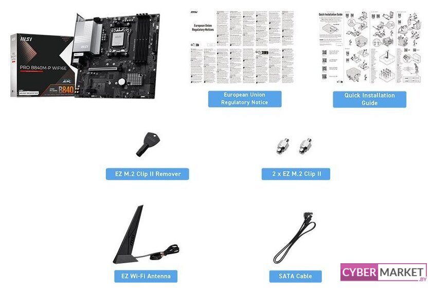 | Комплектация | - кабель SATA- EZ Wi-Fi антенна - 2 винта EZ M.2 Clip II- EZ M.2 Clip II экстрактор- документация |