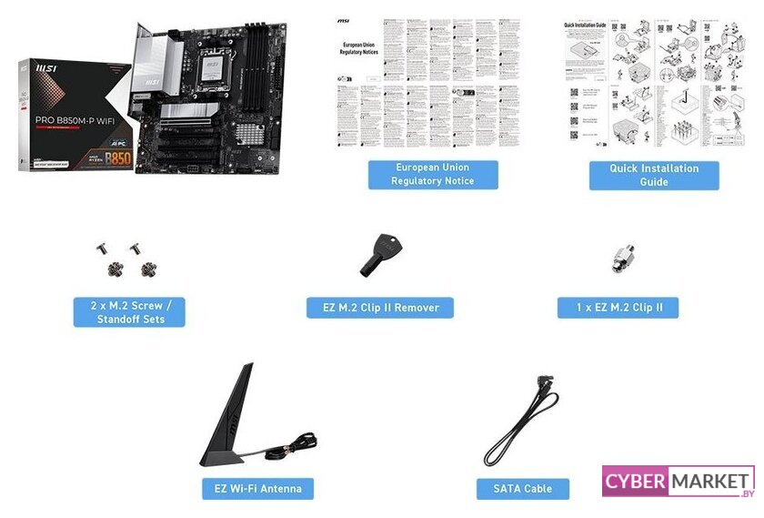 | Комплектация | - 2 винта для M.2- EZ M.2 Clip II экстрактор- винт EZ M.2 Clip II- кабель SATA- EZ Wi-Fi антенна - документация |