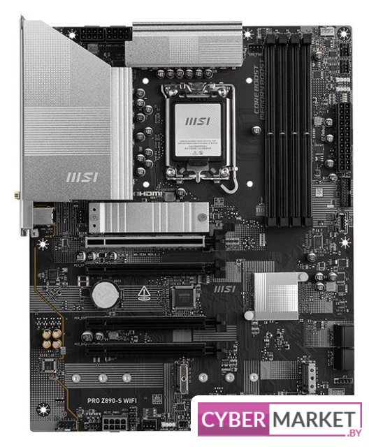 mATX, сокет Intel LGA1851, чипсет Intel Z890, память 4xDDR5 до 9200 МГц, слоты: 2xPCIe x16 5.0, 3xM.2, 8+1+2 фаз питания