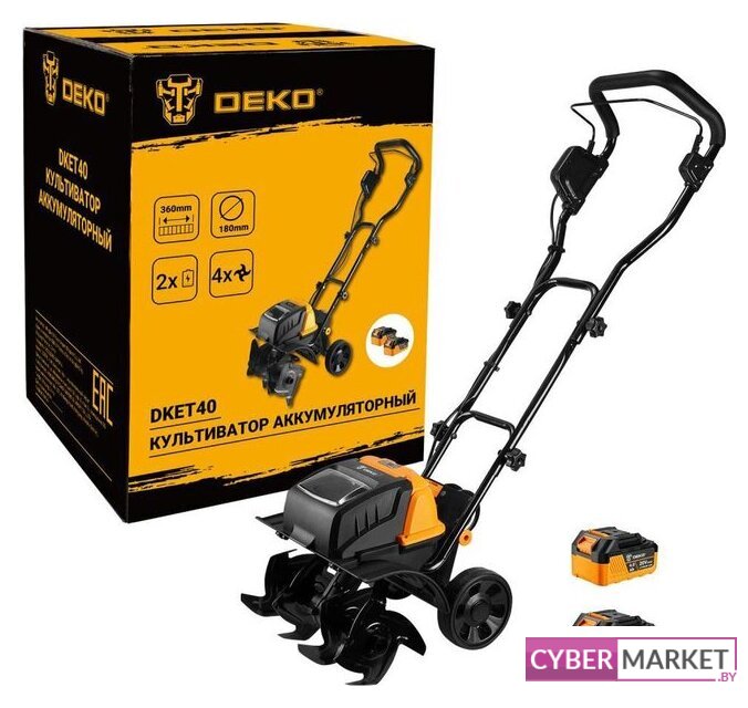 | Комплект поставки | - Культиватор аккумуляторный - 1 шт.- Держатель кабеля - 2 шт.- Зарядное устройство - 1 шт.- Аккумулятор 4,0 Ач - 2 шт.- Инструкция- Коробка |