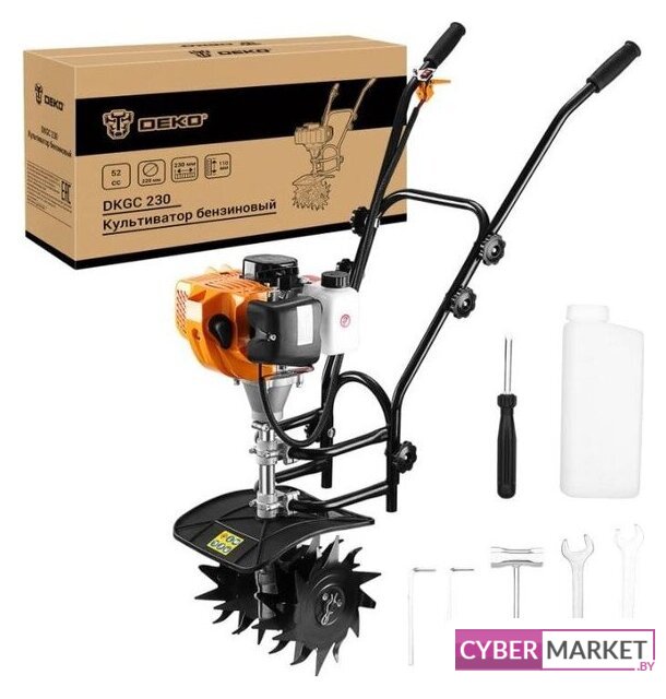 | Комплект поставки | - Культиватор бензиновый (комплект фрез+двигатель) - 1 шт- Рукоятка (состоит из 3-х частей: верхняя часть - 1 шт, средняя часть - 1 шт, нижняя часть - 1 шт) - 1 шт- Емкость для топливной смеси - 1 шт- Крепежный комплект (болты - 6 шт, шайбы - 6 шт, барашковые шляпки винтов - 6 шт) - 1 шт- Отвертка (жало отвертки - 1 шт, рукоятка - 1 шт) - 1 шт- Двухсторонний гаечный ключ - 2 шт- Шестигранный ключ - 2 шт- Свечной ключ - 1 шт- Руководство по эксплуатации - 1 шт |
