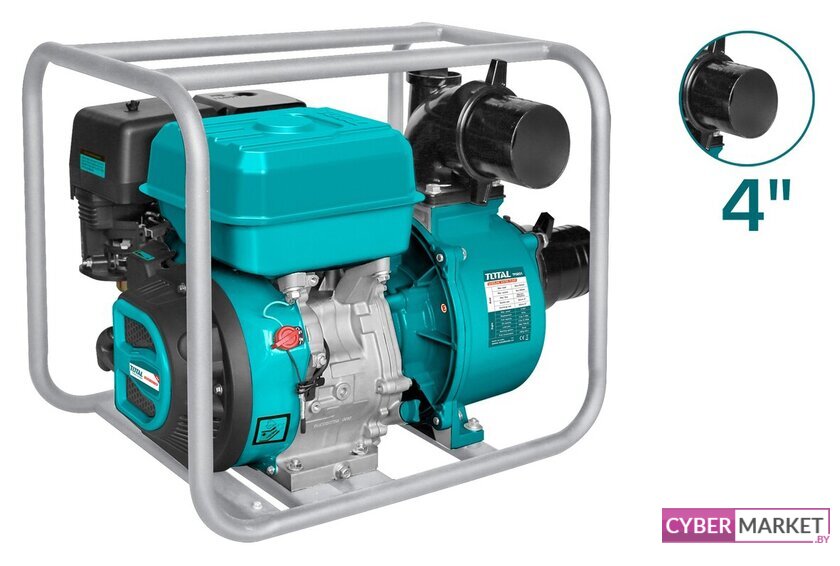 для чистой воды, бензиновый двигатель, мощность 6.3 кВт, производительность 1600 л/мин, высота подъема 30 м, бак 6.5 л, патрубки 100/100 мм