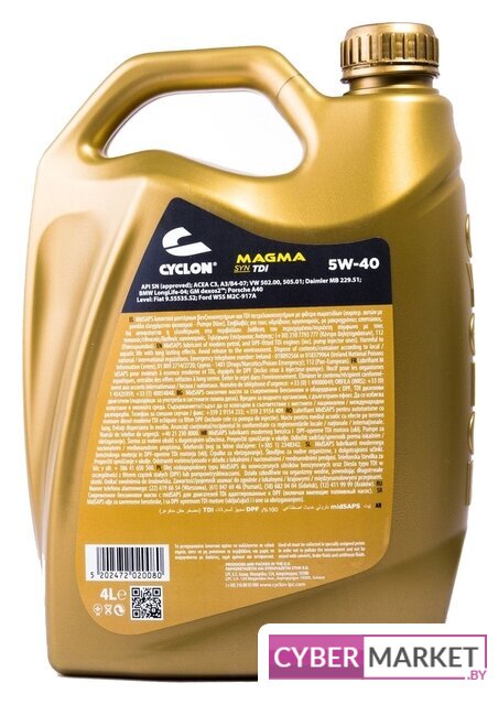 синтетическое, 5W-40, бензиновый/дизельный, допуски: VW 502 00; VW 505 00; BMW Longlife-01; ACEA A3/B4; Fiat 9.55535-H2; Fiat 9.55535-M2; Fiat 9.55535-N2; Fiat 9.55535-Z2; GM-LL-B-025; MB 229.5; Porsche A40; PSA B71 2296; Renault RN 0700; Renault RN 0710, 5 л