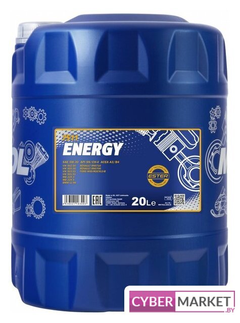 синтетическое, 5W-30, бензиновый/дизельный, допуски API: SN; CF, 20 л