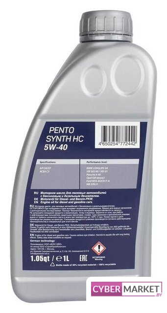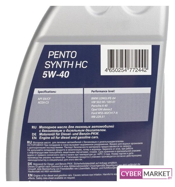 | Допуски и спецификации для легковых авто | VW 502 00, ACEA C3, BMW Longlife-04, Ford WSS-M2C917-A, GM dexos2, MB 229.51, Porsche A40, VW 505 01 |