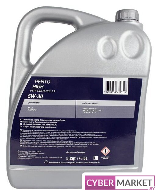 синтетическое, 5W-30, бензиновый/дизельный, 4 л