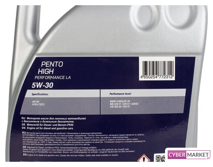 | Допуски и спецификации для легковых авто | VW 502 00, ACEA C2, ACEA C3, BMW Longlife-04, MB 229.31, MB 229.51, MB 229.52, VW 505 01 |